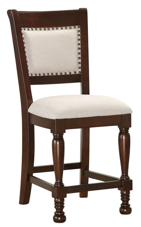 Turn heads with the turned legs and feet on this counter stool. The beautiful finish and upholstered back with nailhead trim are sure to make a statement. Read More