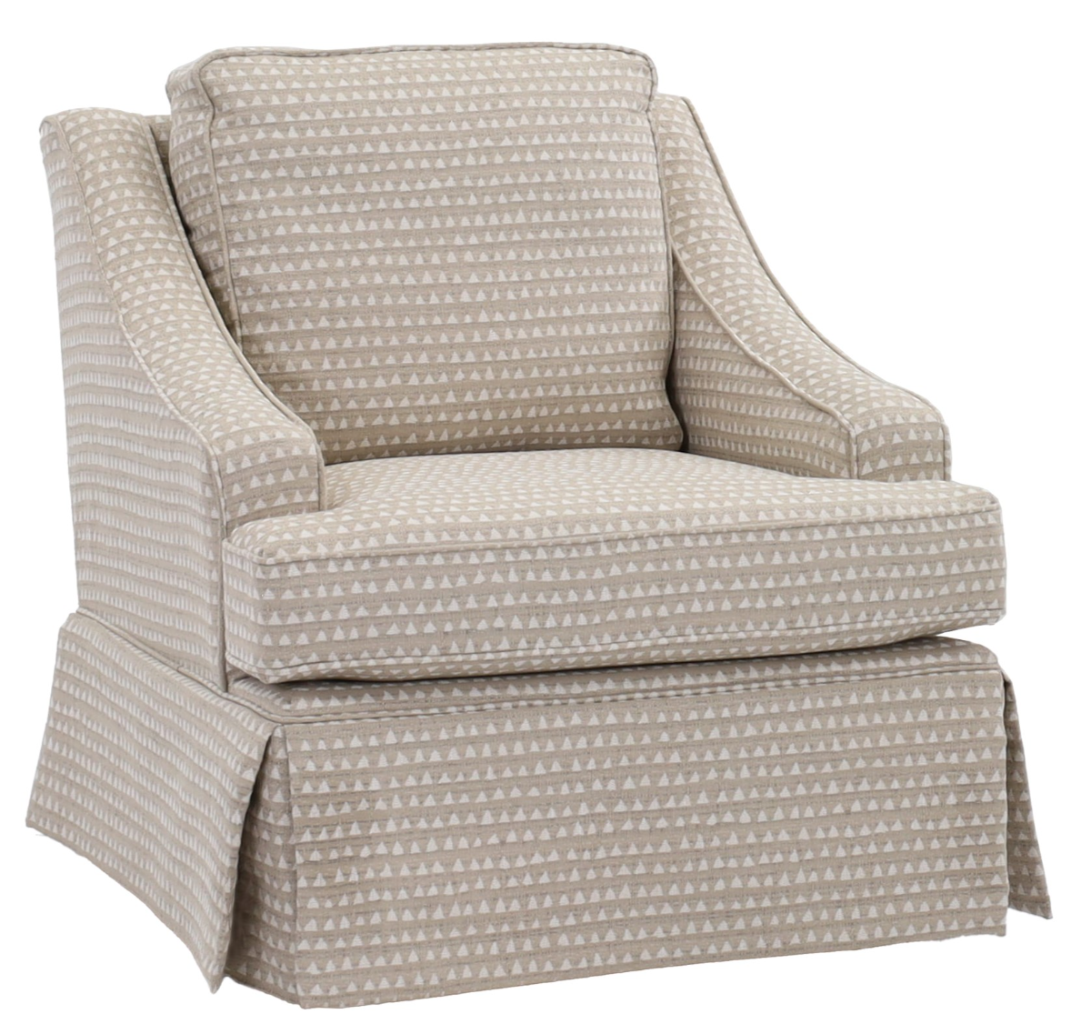 The versatile Ayla chair is on the move. The square body is cut with a sweeping armrest that reaches all the way to the top of the back. Truely customize this transitional chair to make it one of your own. It comes in over 700 fabric choices, and you can have it as a stationary club chair or a 360-degree swivel glider. You can decide whether you want it to stand out from the crowd or support with existing décor. Matching ottoman available.
