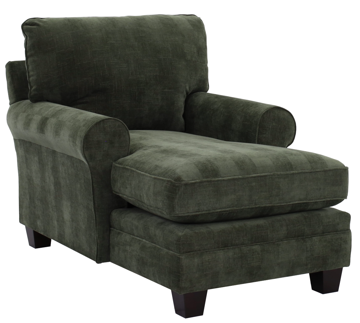 The sturdy hardwood frame built in America ensures durability, while the modern, traditional design adds sophistication to any room. Choose from over 700 fabrics and three wood finishes to make it your own. Elevate your relaxation experience with our upholstered chaise lounge.
