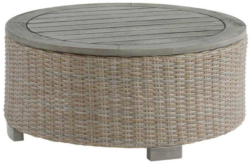 It features a woven rattan design with a warm tan finish. Its sturdy construction and chic appearance make it ideal for outdoor settings, providing a stylish and practical surface for relaxation and entertaining. Read More