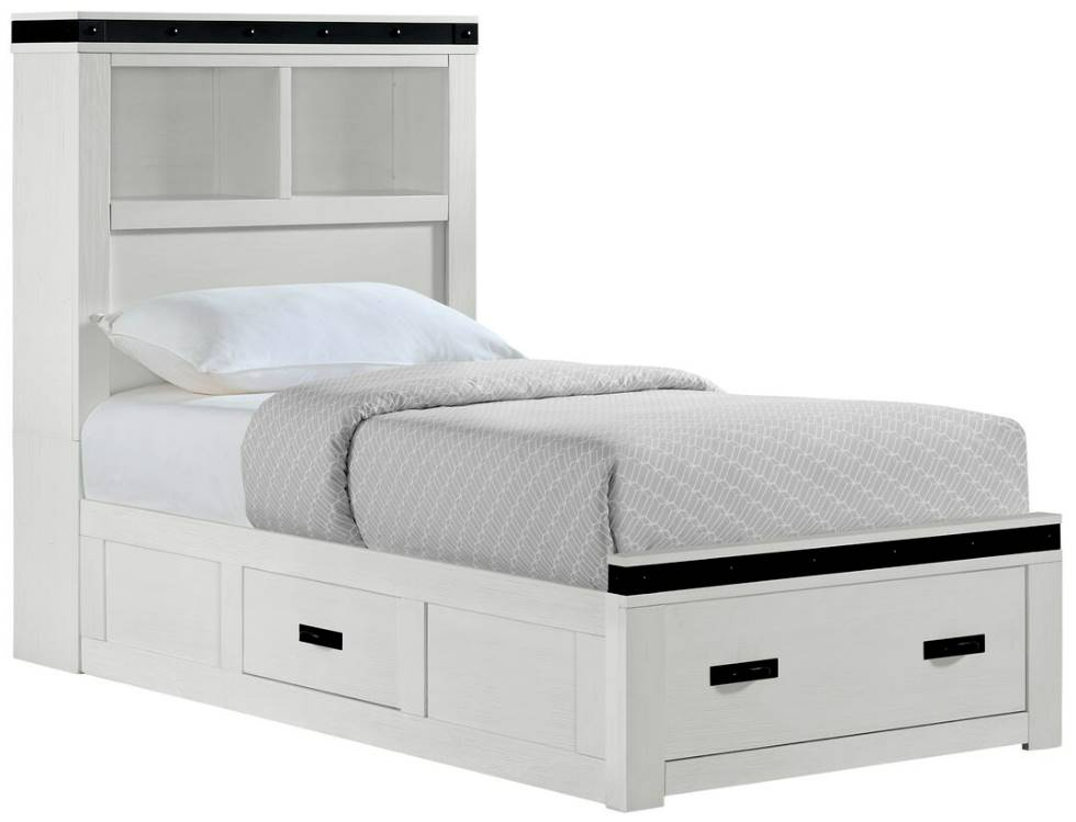 The Elements International Wade White Twin Platform/Storage Youth Bed offers a sleek white finish, built-in storage drawers, and a modern platform design, providing style and functionality for any youth bedroom. Read More