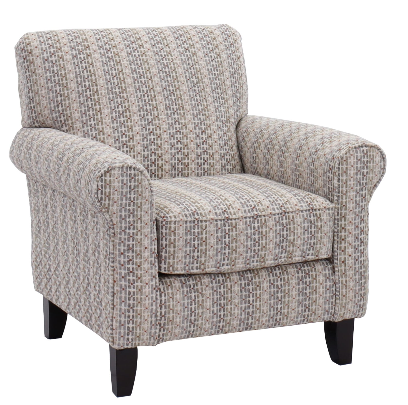 This is a beautiful accent chair that features rolled arms, a tight back, a loose seat cushion, and tapered legs. Read More