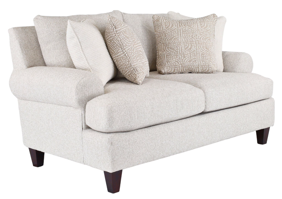 Artful elements and plush textures make for a living room that calms and inspires. Many have seen success of basic wool. This loveseat emulates the tonal elements we love but moves away from the Farmhouse trend with heavier textures and more casual handcrafted pillows. Read More