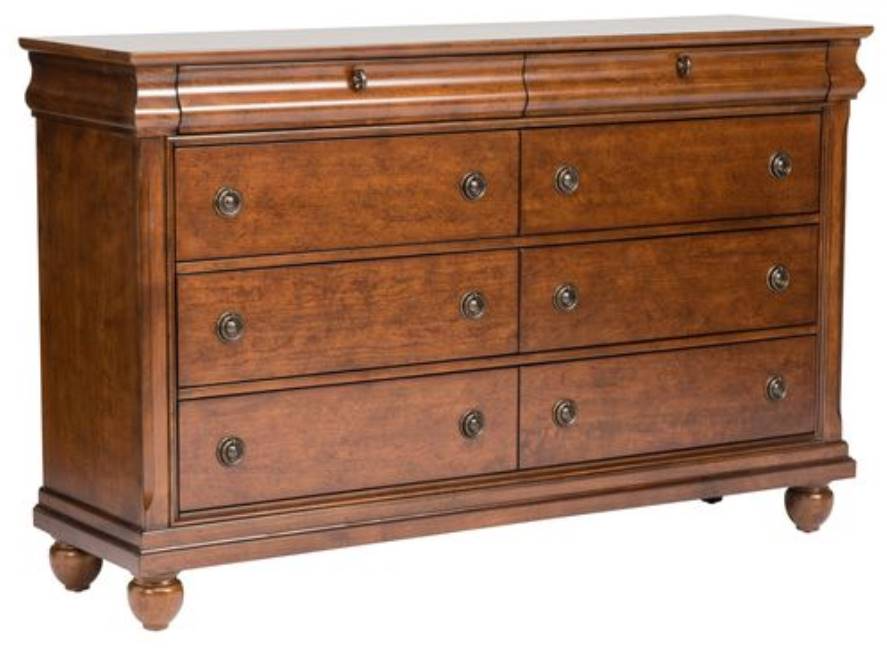 Dream sweet dreams surrounded by the charming Louis Philippe design of the Rustic Traditions collection from Liberty Furniture. Smooth, gently curving lines, a rich, cherry finish, and turned feet provide ample character and sleek aesthetics. Amp up your bedroom and rest peacefully with this handsome collection.