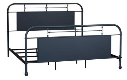 Enjoy industrial styling at its finest with the Vintage Series navy king metal bed. Crafted of metal tubing and finished in a beautiful navy with wear thru, the headboard and footboard feature a softly shaped cap rail and turned metal spindles highlighting a metal center panel. Read More