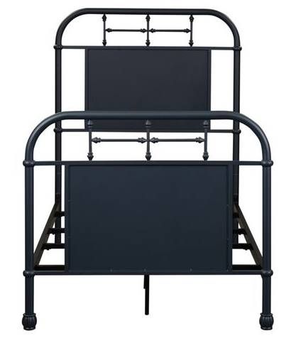 Add a unique look to your home with the Vintage Series Twin Metal Bed. Crafted of metal tube and finished in a beautiful navy with wear thru. The headboard and footboard feature a softly shaped cap rail and turned metal spindles highlighting a center panel. Read More