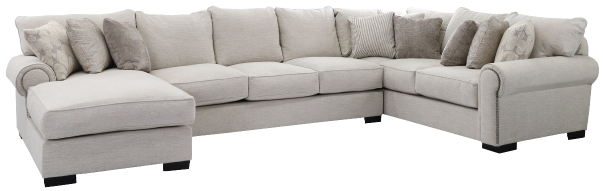 Includes: left arm facing chaise, armless Queen sleeper sofa, and right arm facing sofa