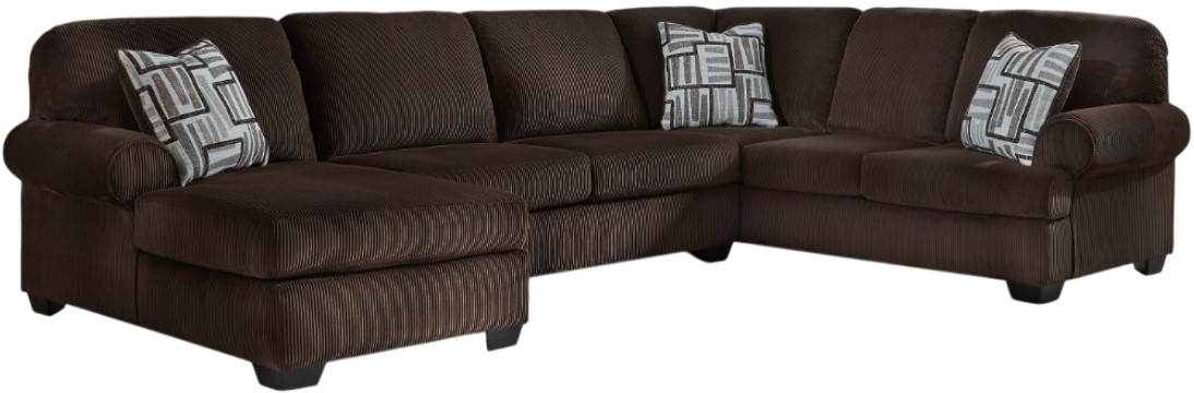 Cozy, casual comfort—made with everyday style in mind. This sectional with chaise is a reflection of your transitional tastes. Its soft-to-the-touch fabric, in a versatile warm chocolate brown, is detailed with a subtle corded design for added flair. Read More