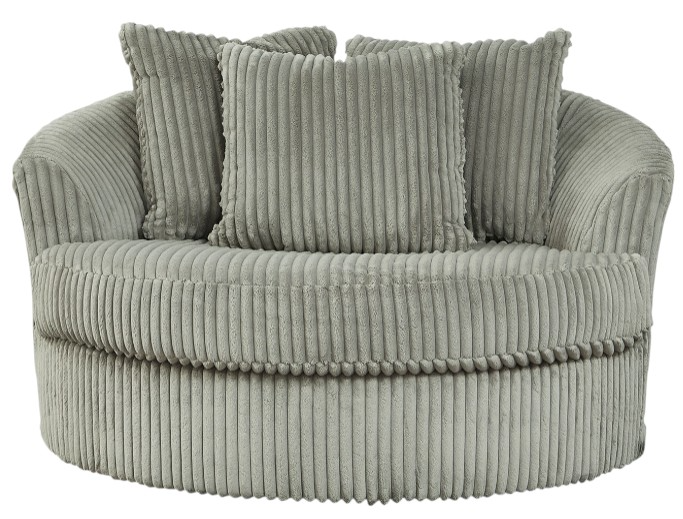 Plush and posh. Showcase your eye for on-trend texture with the statement-making cord upholstery of this oversized swivel accent chair. Its stunningly soft fabric entices in a warm neutral hue, complementing contemporary color palettes. Sink into the spacious cushion, this cozy living room chair highlights your high-end approach to comfort and style. Read More