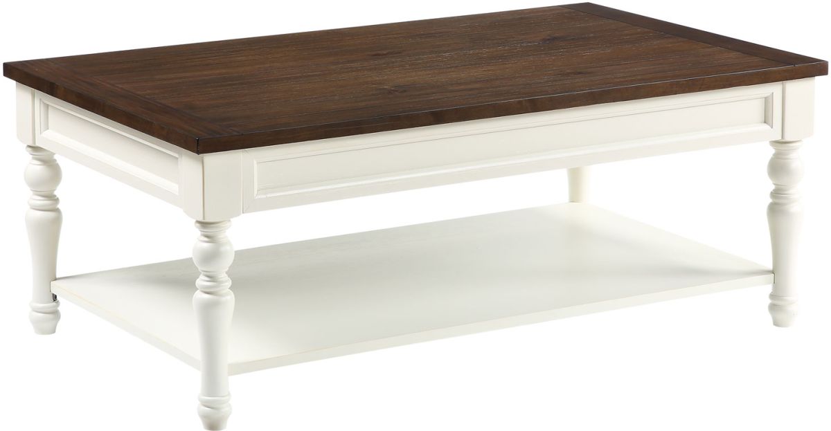 Add farmhouse charm to your living area with the Joanna Cocktail Table. Gracefully turned legs combine with a two-tone ivory and mocha finish for an inviting look that works well with any farmhouse or cottage upholstery. Read More