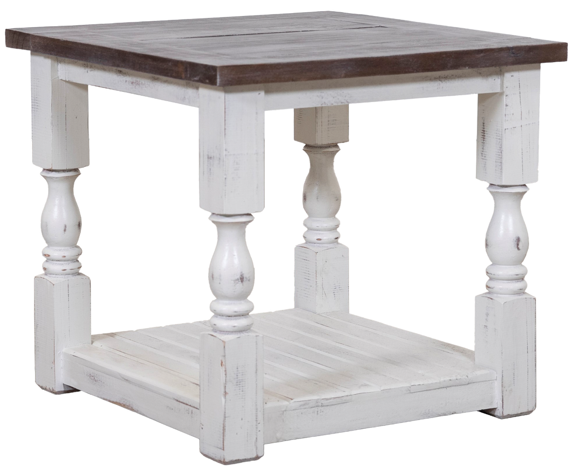 Vintage Furniture's Alena Nero White/Ash End Table.. Vintage Furniture is handmade of Solid Wood Construction and all hand-finished to create a unique quality look made to the highest standards of craftsmanship.