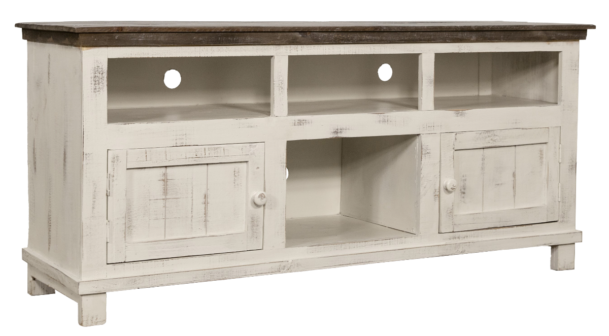 Burch TV console featuring two doors and shelving spaces for extra storage. Read More