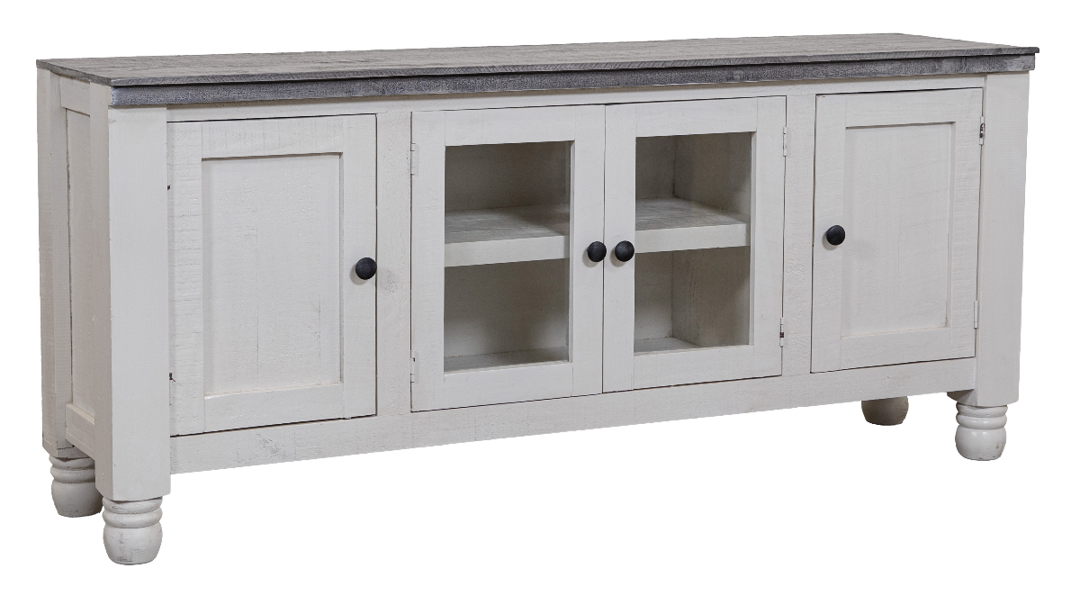 This tv console by Vintage Furniture is made of solid wood and is in the Linen/Terra finish. Vintage Furniture is handmade of solid wood construction and all hand-finished to create a unique quality look made to the highest standards of craftsmanship.