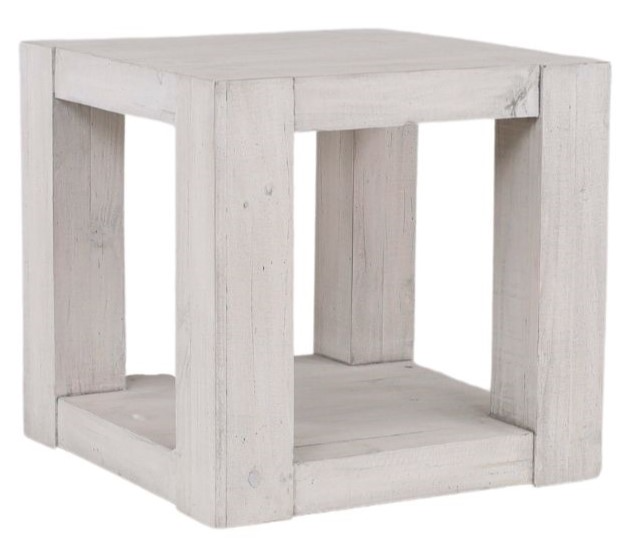 This end table by Vintage Furniture is in the Bone finish and is made of solid wood. Vintage Furniture is handmade of solid wood construction and all hand-finished to create a unique quality look made to the highest standards of craftsmanship.