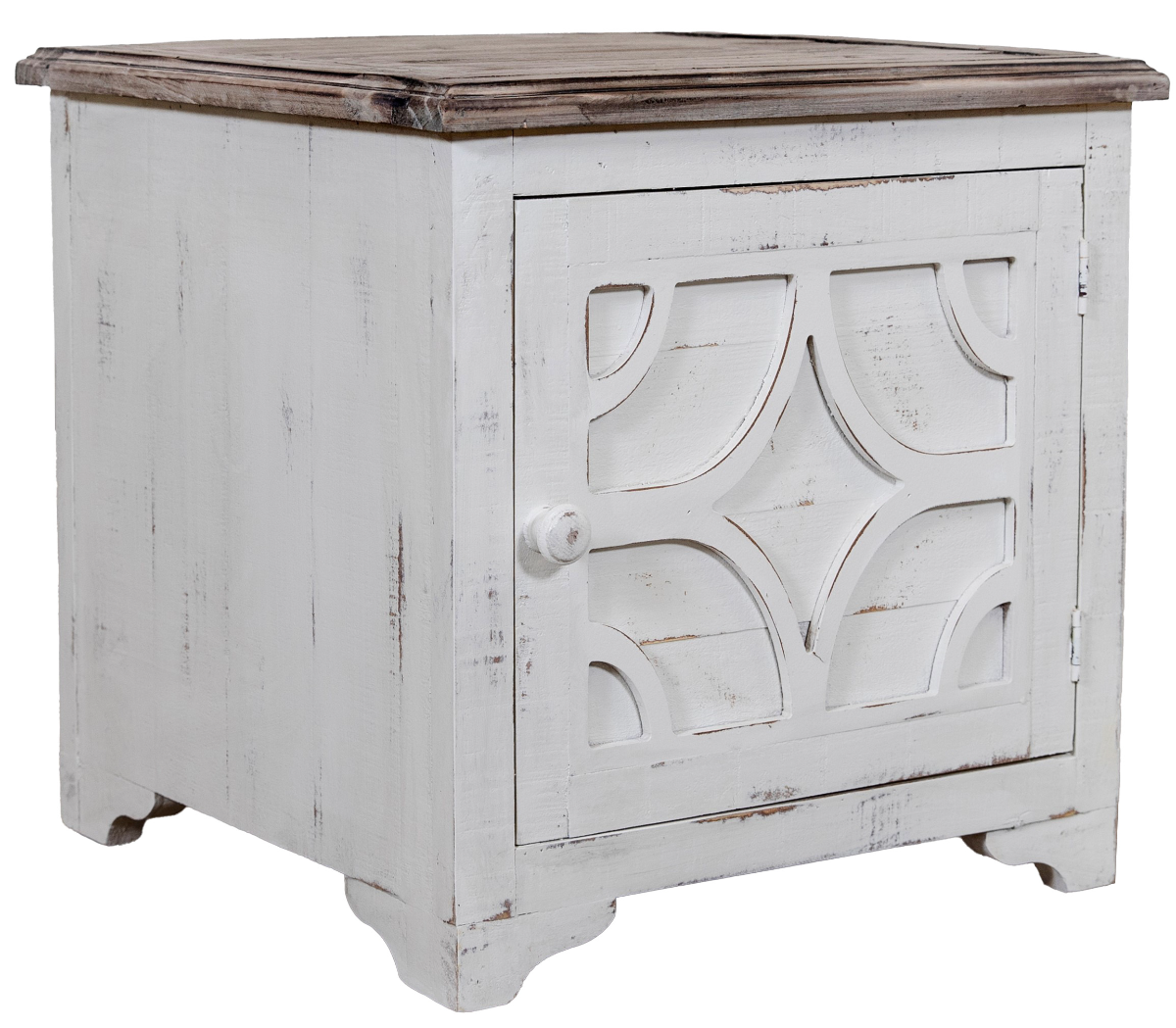 Vintage Furniture's Westgate Nero White/Granite finish End Table.. Vintage Furniture is handmade of Solid Wood Construction and all hand-finished to create a unique quality look made to the highest standards of craftsmanship.