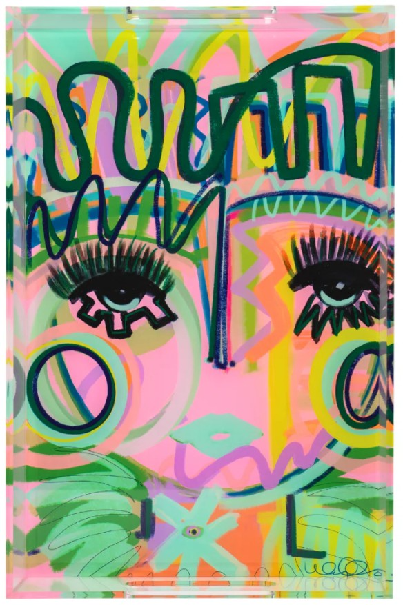 This sleek tray boasts an original art piece delicately printed onto its surface, adding a touch of artistic flair to any space